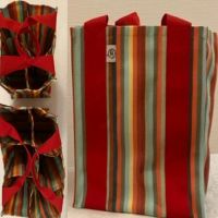 | Eine praktische und gleichzeitig hübsche Tasche, die Flaschen vom Klappern abhält oder einfach etwas Ordnung in den Einkauf bringt: eine Tasche mit 4 oder 6 Fächern zum Flaschen o.ä. einstellen! Mit (Wein-) Füllung auch gut als nicht ganz kleines Geschenk für eine Einladung geeignet! Mit weniger Taschenhöhe lassen sich gut allerlei Handarbeitsutensilien sortiert unterbringen. | |