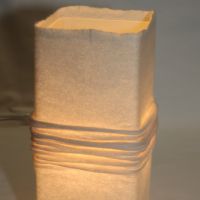 | Hauchfeine weiße Wolle, Seide und andere Fasern sind unser Material. Es entstehen Lampenschirme, die eine ganz besondere "Ausstrahlung" haben. | |
